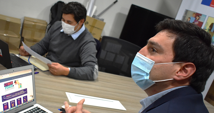 Talca, lunes 3 de agosto de 2020-. Con el propósito de conocer el impacto que ha tenido en sus ideas de negocio la plataforma www.cyberfosis.cl que se habilitó la semana pasada, el seremi de Desarrollo Social y Familia, Felipe Valdovinos, junto al director del Fosis, Alejandro Muñoz, sostuvieron una videollamada con las 52 emprendedores que se han registrado en la página.