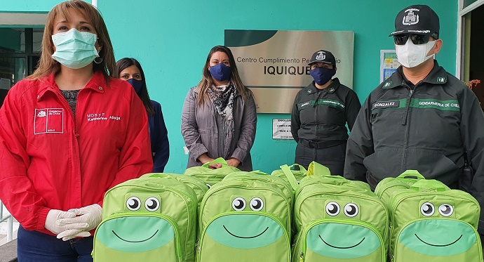 La seremi de Desarrollo Social y Familia hizo entrega de las mochilas a Gendarmería de Chile en el recinto penal. Los kits incluyen materiales didácticos, educativos, de entretención y de resguardo para niños hasta 9 años de edad.