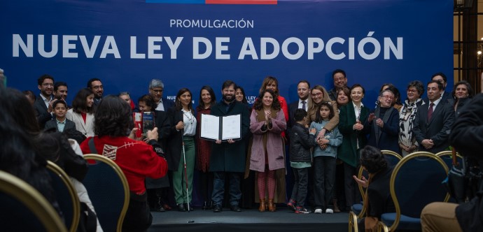 La ceremonia, que convocó a familias adoptivas, organizaciones de la sociedad civil y parlamentarios fundamentales en la tramitación del proyecto, marca un avance sustantivo en la protección integral de los derechos de niños, niñas y adolescentes (NNA) en Chile tras su aprobación transversal en ambas cámaras del Congreso luego de 12 años.