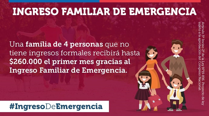 El Ingreso Familiar de Emergencia es un subsidio directo al bolsillo de los beneficiarios, que se entregará por hasta tres meses, de manera decreciente, a los hogares informales más afectados por la crisis sanitaria y económica provocada por la pandemia, es decir, aquellos hogares que  perteneciendo al 60% más vulnerable del país en los meses de emergencia, no pertenezcan al 10% de mayores ingresos en el mediano plazo, y no posean ingresos formales provenientes de remuneraciones percibidas a causa de un contrato de trabajo, por ejemplo.