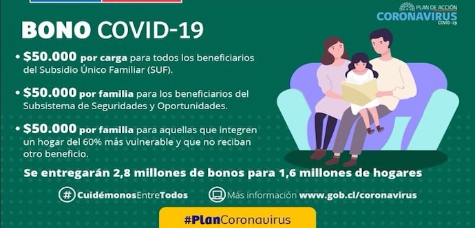 La medida implica la inyección de US$167 millones en las familias chilenas, que podrán acceder al Bono desde abril a través del sistema cuenta RUT, cuenta vista o vale vista en las sucursales del BancoEstado.